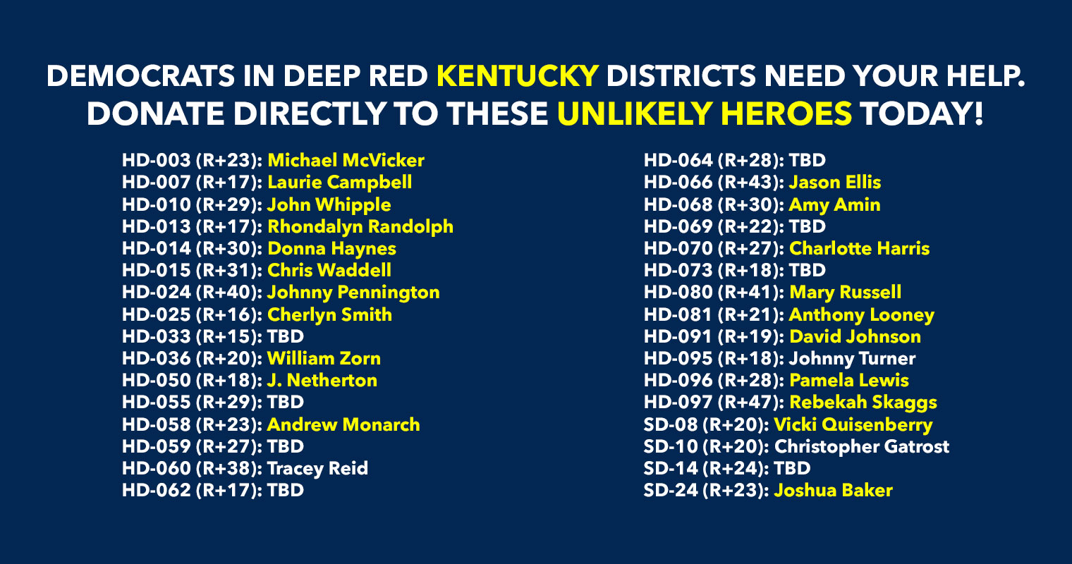 Donate to Democrats running in deep red districts to boost turnout & force Republicans to defend their turf!