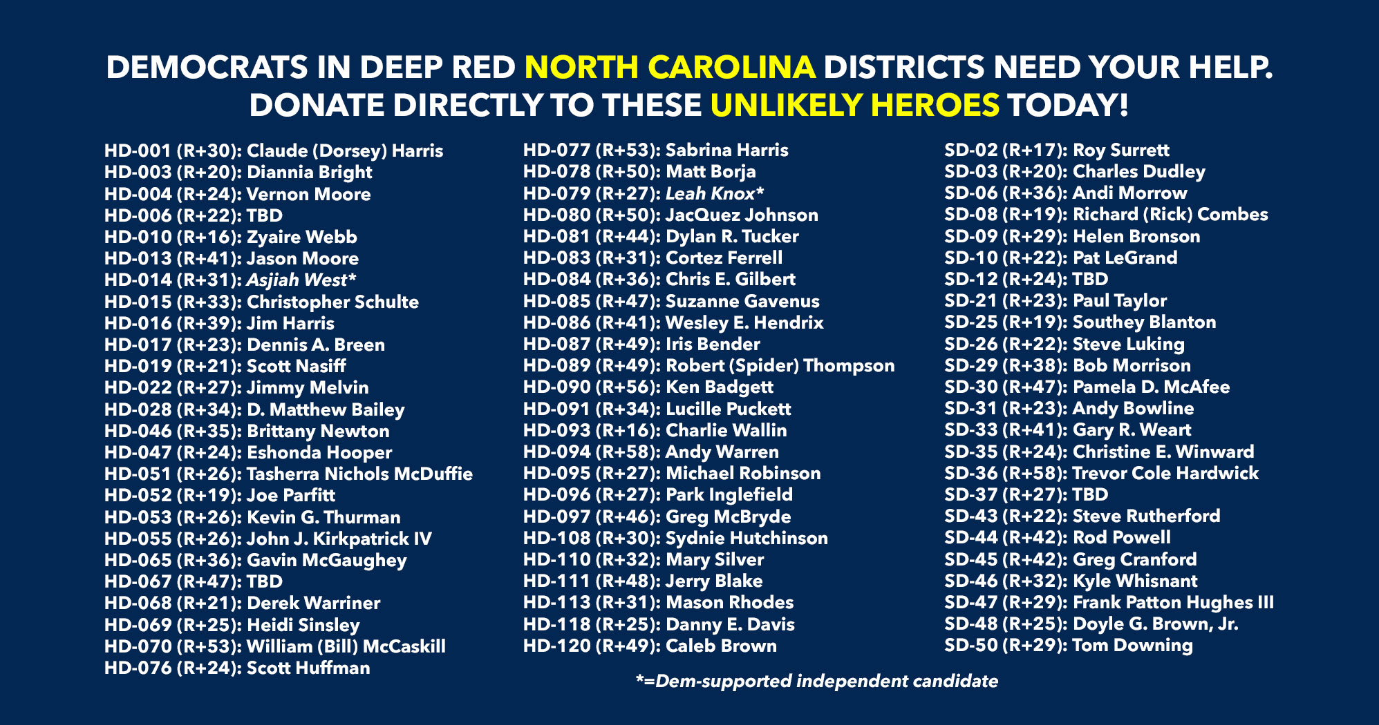 Donate to Democratic candidates running in competitive districts to keep & flip as many seats blue as possible!