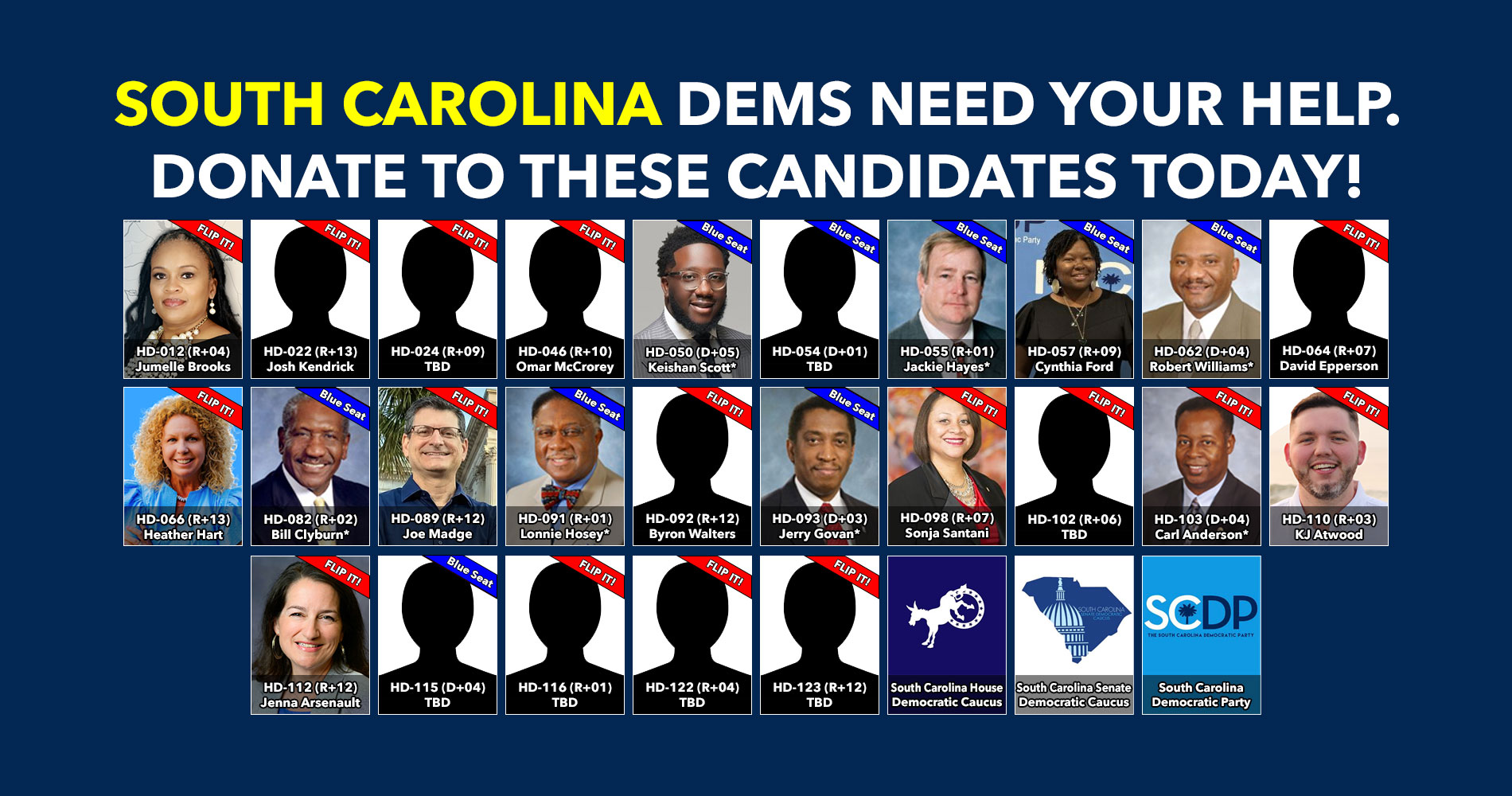 Donate to Democratic candidates running in competitive districts to keep & flip as many seats blue as possible!