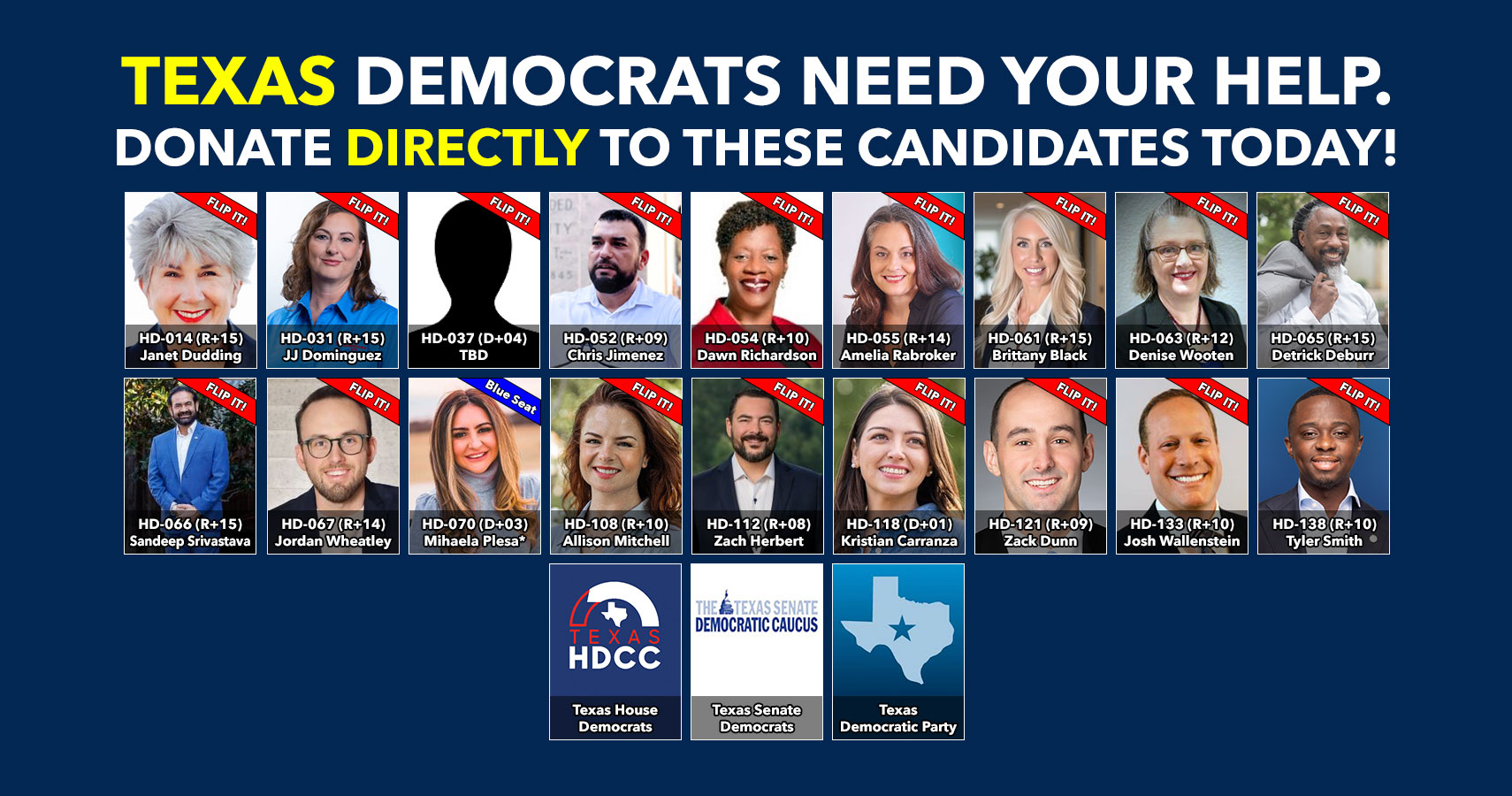 Donate to Democratic candidates running in competitive districts to keep & flip as many seats blue as possible!