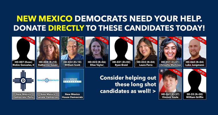 New Mexico's candidate filing deadline passed today, so I've gone ahead and updated my NM Legislature fundraising page to include the state House & Senate districts ranked with PVI scores of +9 or lower: