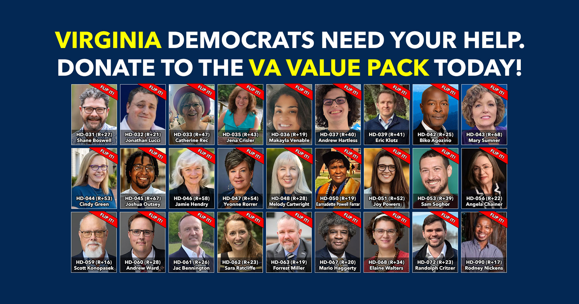 These are the Virginia Democrats who are contesting the 27 most Republican-leaning districts. They’re keeping GOP incumbents bank accounts busy protecting red seats & away from flipping blue seats.